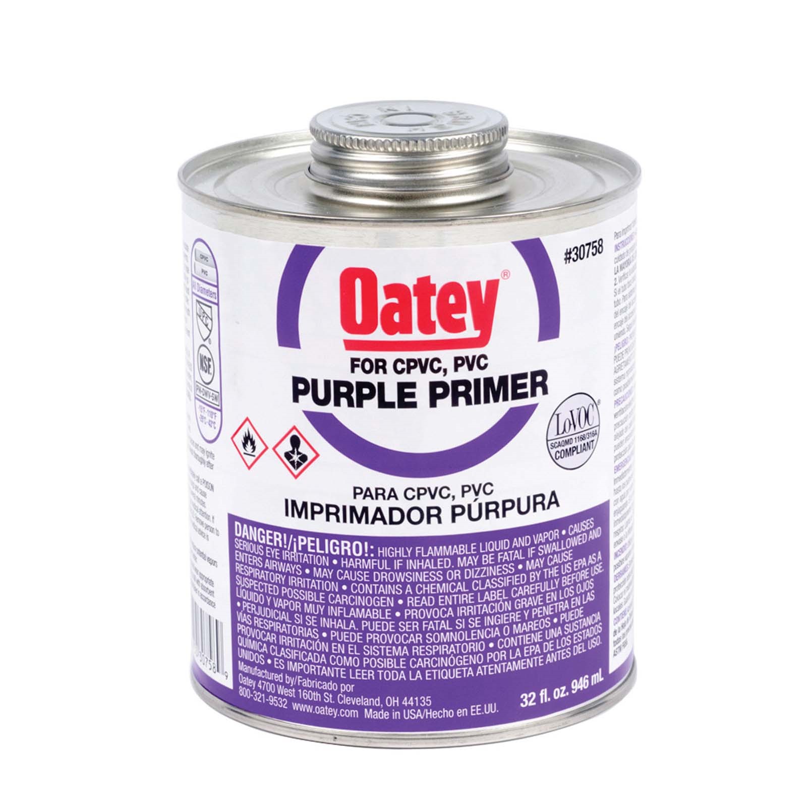 OATEY 30758 PURPLE LOW VOC PRIMER, 32 OZ QUART