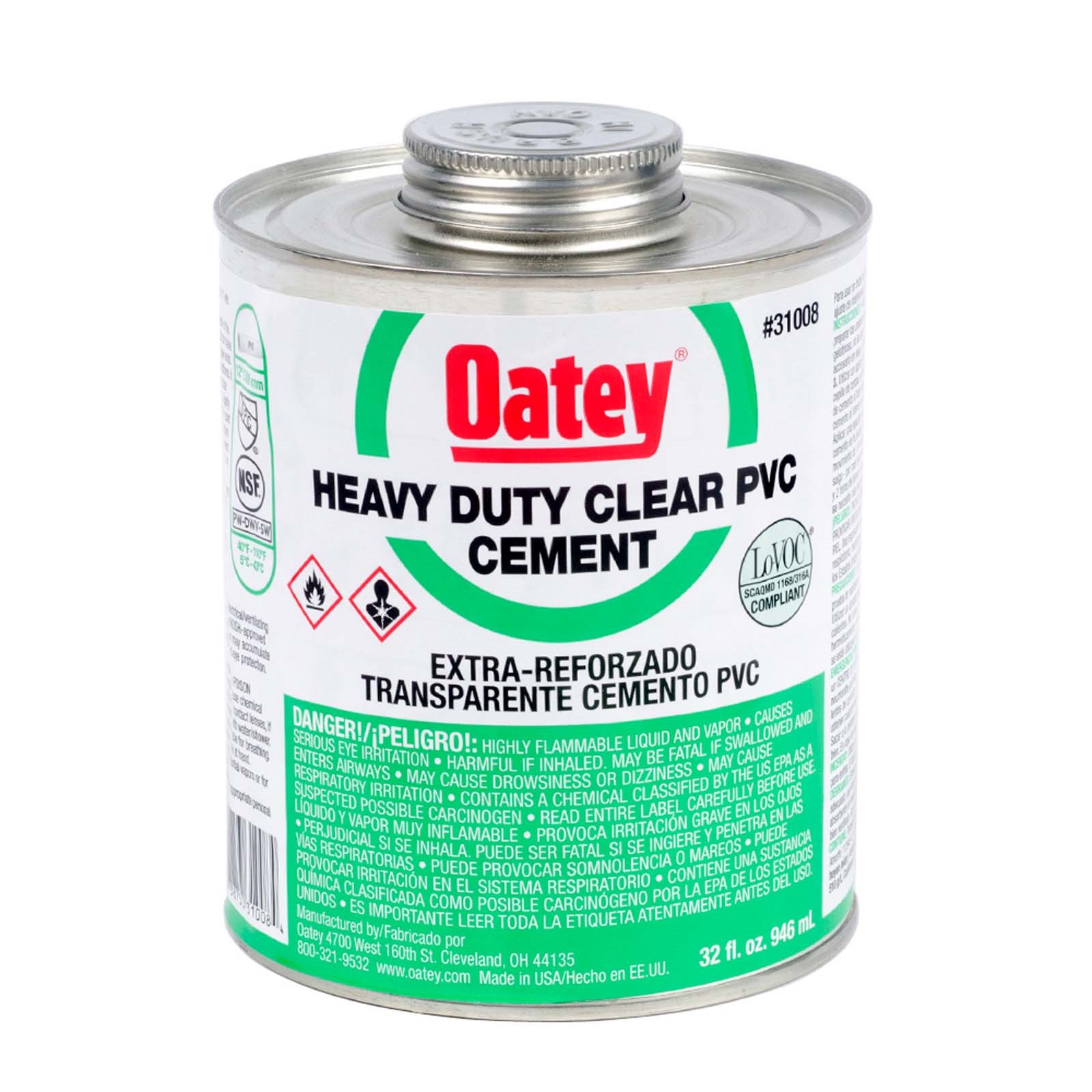 OATEY 31008 HEAVY-DUTY PVC CEMENT, 32 OZ CAN, CLEA